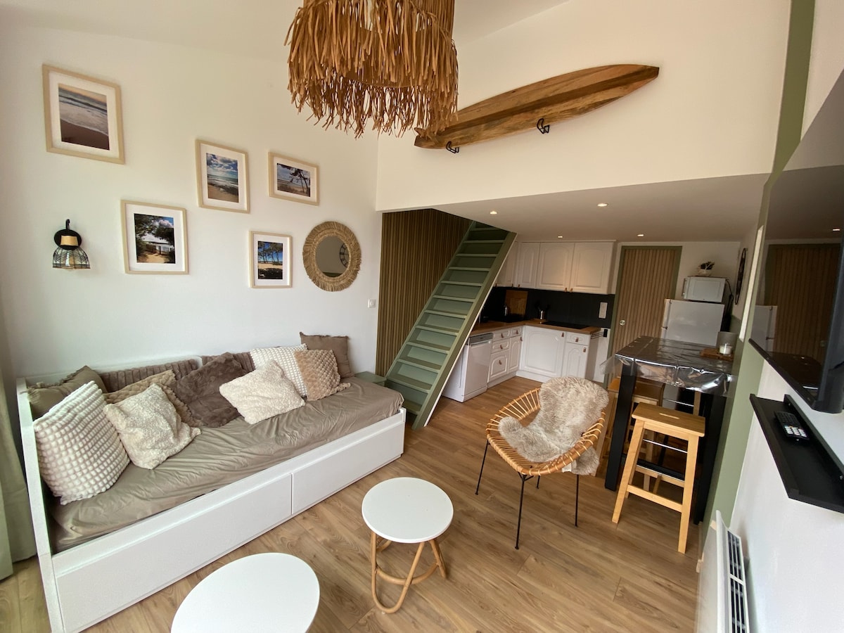 Ang mga pakinabang ng napakalinaw na 3* ** apartment na ito na 35 m²: - may perpektong lokasyon sa gitna ng karaniwang Quartier du Passage, 1 minuto mula sa beach! - bagong sapin sa higaan sa 2024 Queen Size 160x200! - 1 hiwalay na silid - tulugan - kasama ang mga sapin at tuwalya - walang karagdagang o nakatagong gastos na idaragdag: marami sa aming mga pasilidad ang available sa iyo nang libre (travel cot, mataas na upuan, mga laruan sa beach, mga cart sa merkado, atbp.) - posibleng paghahatid ng bagahe mula 2 p.m. (tingnan ang mga detalye sa anunsyo)