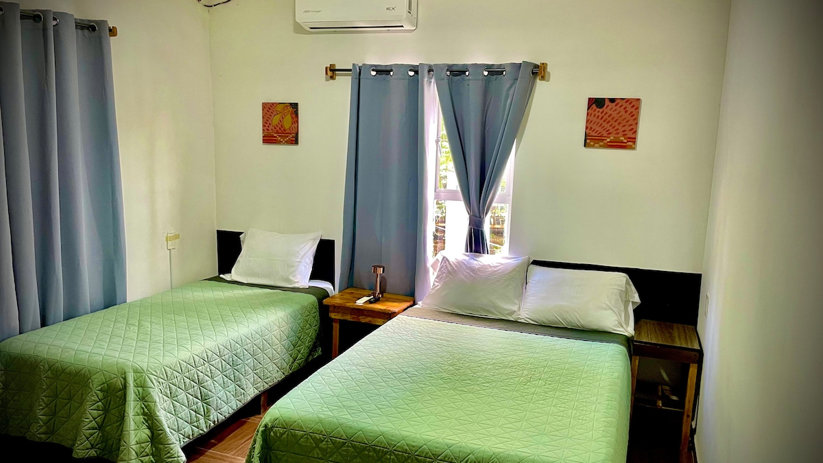 Modernong suite na may industrial touch, na may sariling banyo, kusina, air‑conditioned na may mainit/malamig na A/C, high‑speed internet, Smart TV (bukas ang Netflix), sala, common area, fire extinguisher (4), smoke detector sa bawat kuwarto, USB Charge center sa bawat kuwarto. Hindi kapani - paniwala para sa Turismo ng Paggawa, Medikal o Pamilya. Napakasentro at tahimik na lugar na nasa isa sa mga pinakaligtas at pinakasentrong bahagi ng lungsod. Madaliang mapupuntahan ang Konsulado, 3 internasyonal na tulay, at beach.