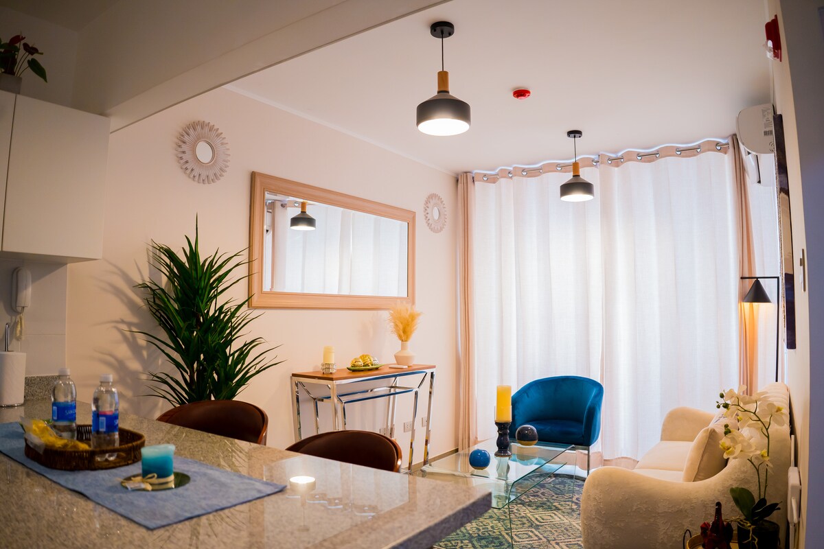 Modernong apartment na kumpleto ang kagamitan at mainam para sa matatagal na pamamalagi. Smart TV, mabilis na Wi‑Fi, air conditioning, kusinang may kumpletong kagamitan, washing machine, queen‑size na higaan, mainit na tubig, at balkonaheng nakaharap sa kalye. 24 na oras na reception, pool, elevator. Ang tuluyan. Ang iyong perpektong tuluyan para magpahinga at mag-enjoy nang husto. Mayroon dito ang lahat ng kailangan mo, bumiyahe ka man para sa trabaho, turismo, o para sa mas matagal na pamamalagi.