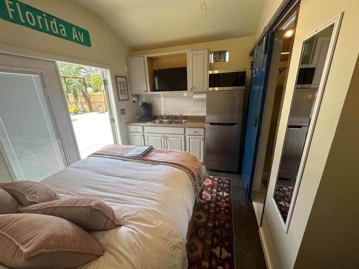 Masiyahan sa aming komportableng back yard guest suite. Ganap na nakabakod sa pamamagitan ng bakod sa privacy na may nakatalagang paradahan sa labas ng kalye. Maigsing distansya ang aming tuluyan sa ilan sa mga pinakamagagandang bar, coffee shop, at restawran sa Seminole Heights. Sa loob, magkakaroon ka ng kumpletong kusina, komportableng bagong Queen size bed, Smart TV, at mabilis na internet. Mayroon kami ng lahat ng kailangan mo para makapagbigay ng komportableng pamamalagi para sa bakasyon o business trip sa gitna mismo ng lungsod na may mabilis na access sa lahat ng bagay sa pamamagitan ng kotse.