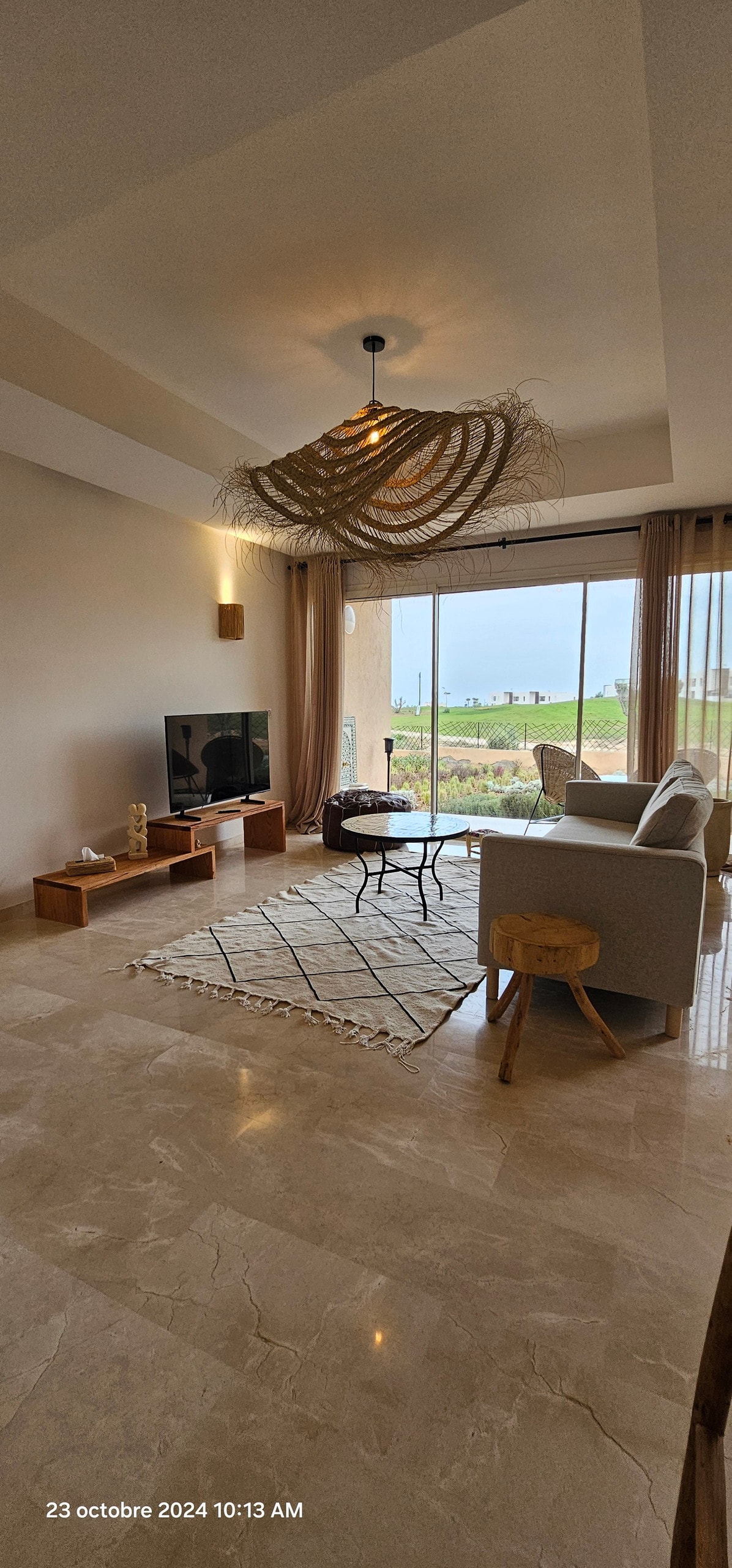 Modern apartment redesigned by an architect in Taghazout , perfect for relaxation or remote work. It features 2 bedrooms, 2 bathrooms, a fully equipped kitchen, a spacious living room with a flat-screen TV, and fiber-optic internet, ideal for working. Relaxing veranda with sea views. Secure residence with 4 pools, just 10 minutes from the beach and surf spots. Access to resorts to enjoy their bars/restaurants and pools. - Free Parking - Secured - Golf Taghazout - 10m from Taghazout Village