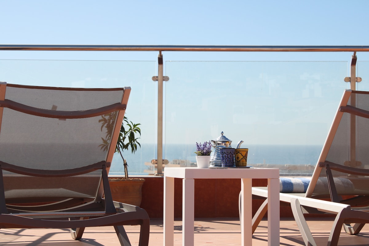 Apartment na may tanawin ng beach, 7 min mula sa Marina Agadir