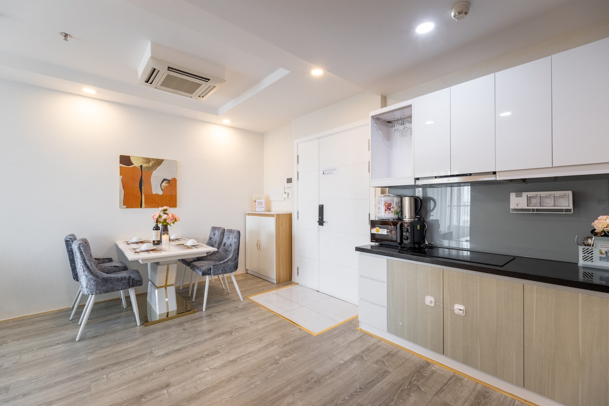 3 minutong lakad ang Masteri Thao Dien apartment mula sa istasyon ng An Phu Metro, madali para sa iyo na lumipat sa sentro gamit ang tren. Matatagpuan ang apartment sa isang lugar ng mga expat na nakatuon sa pamumuhay sa Thao Dien. Ilang hakbang lang ang apartment na ito mula sa Vincom Megamall, at marami itong tindahan, restawran, libangan, at sinehan. May pribadong balkonahe, swimming pool, at gym ang apartment. May access ang mga customer sa libreng 300Mbps high - speed WiFi sa apartment. Nagtatampok ang apartment ng kusinang may kagamitan na may electromagnetic stove, microwave, at mga pangunahing kagamitan sa pagluluto.