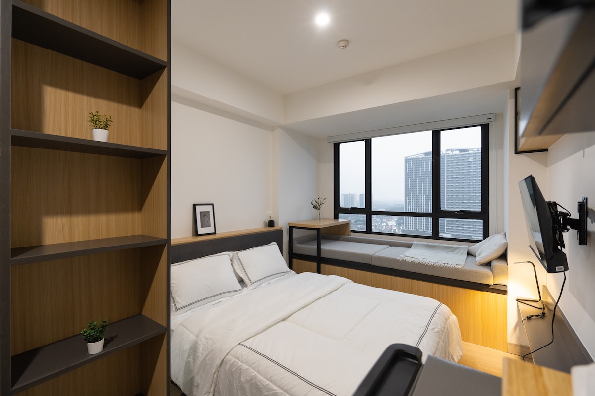 Professionally Managed by Kozystay Escape to a thoughtfully designed 2-bedroom retreat in Tangerang — blending Japanese-inspired calm with modern luxury, complemented by a private lift, loft-style layout, pool, gym, and a prime city location. AVAILABLE TO GUESTS: + Digital Check-in + Professionally Cleaned (disinfect) + Hotel Grade Amenities & Fresh Linens + Free High-Speed Wi-Fi & Cable TV + Free Access to Netflix