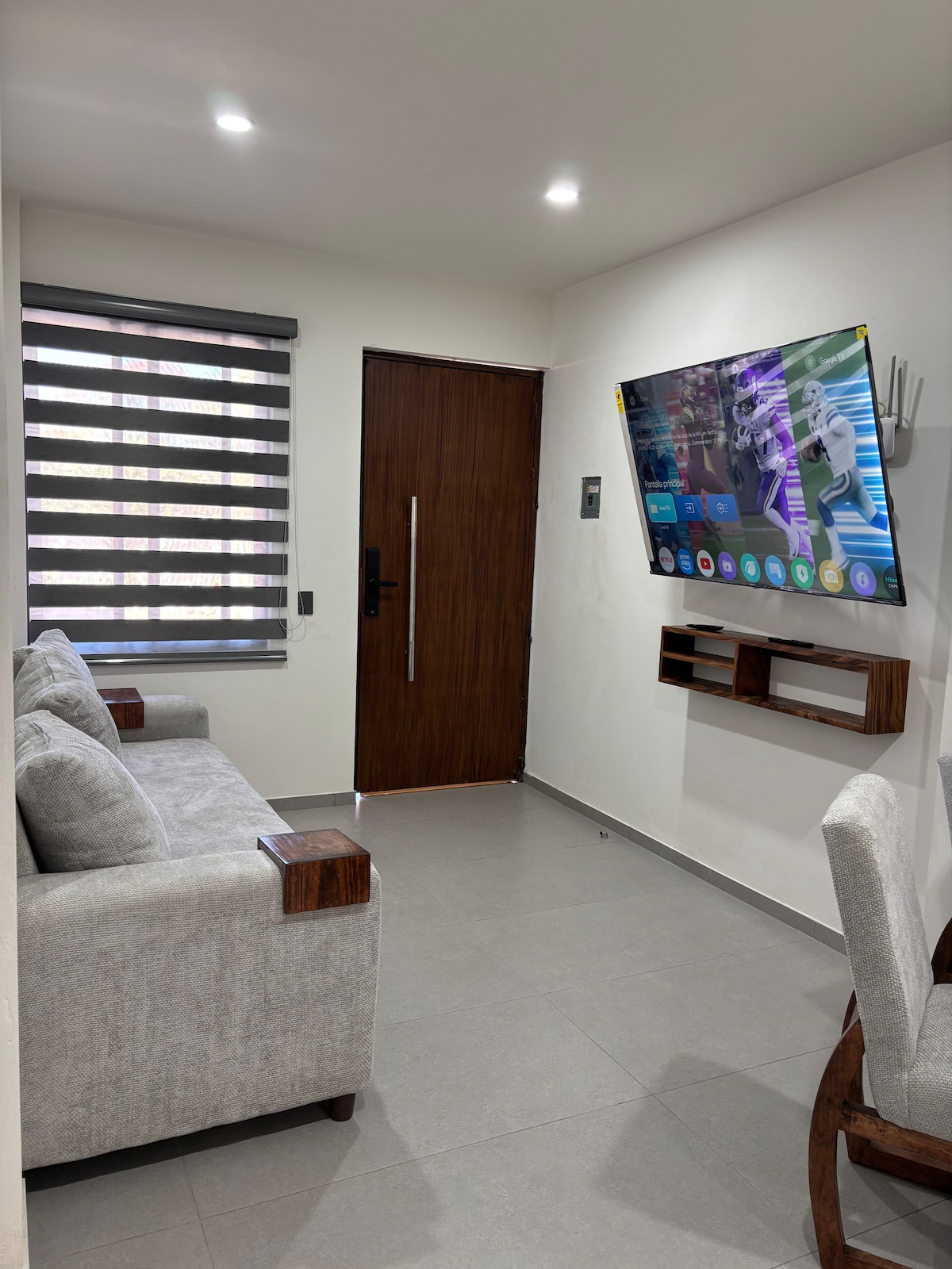 Excelente departamento en planta baja con estacionamiento súper equipado . Wifi, a/c, cama King y queen . Sofá cama . Pantallas en cuartos de 65”, sala ,sofá cama y Servicio de lavandería