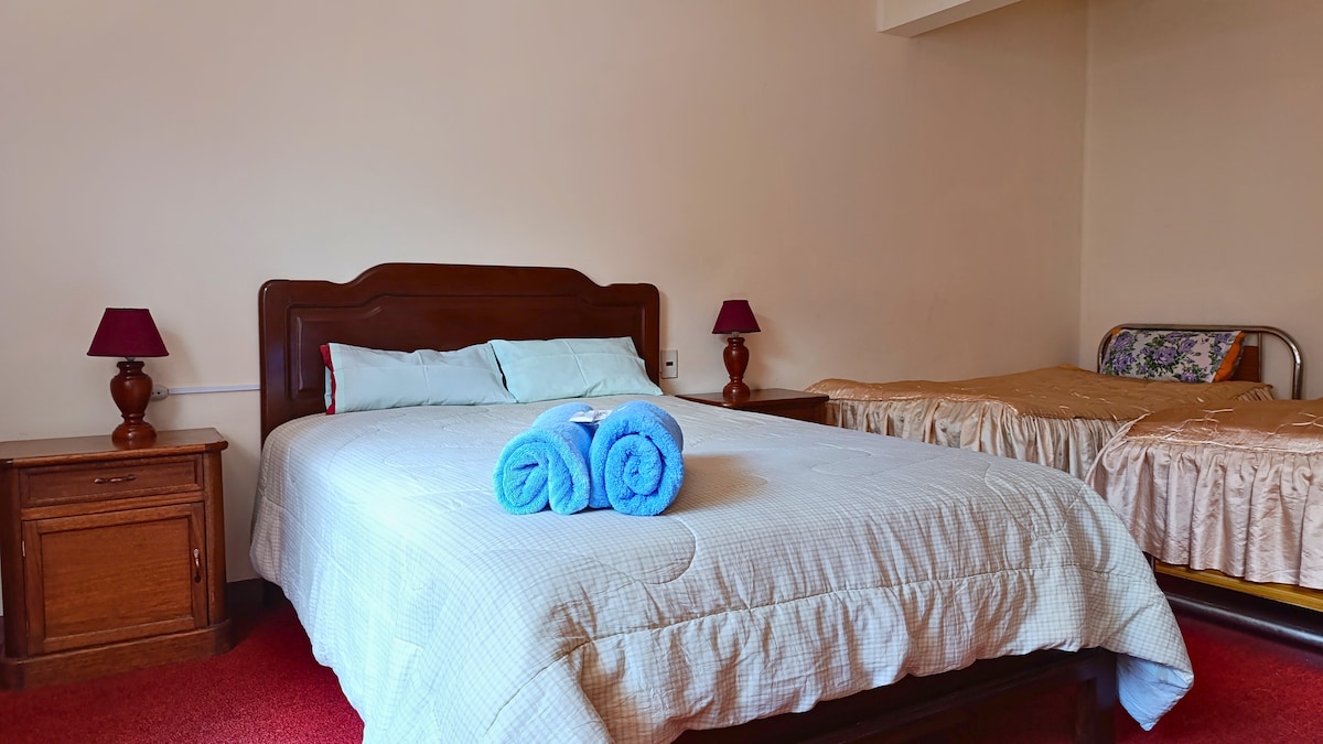 Magrelaks sa tahimik at eleganteng tuluyan na ito. Matatagpuan kami 10 minuto mula sa downtown, at kasama ang lahat ng serbisyo para maging pinakamagandang karanasan ang iyong pamamalagi sa bakasyon mo. Matatagpuan sa isa sa mga residential area ng lungsod, kaya magiging payapa at komportable ang pamamalagi mo. Presyo kada gabi kada tao.