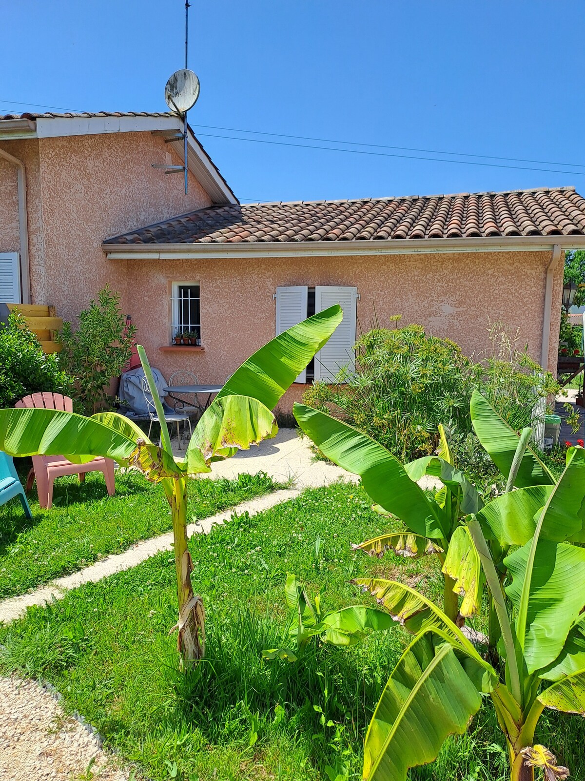 Magrelaks sa tahimik at naka - istilong tuluyan na ito. Tangkilikin ang tanawin ng Pyrenees, 25 kilometro mula sa Toulouse, 3 kilometro mula sa Canal du Midi. Terraced house na binubuo ng1 silid - tulugan (na may TV), 1 banyo, 1 kusina, 1 dining area, 1 dining area pati na rin ang 1 mezzanine na may 2 single bed at 1 TV area. Pribado ang paradahan, pasukan, at terrace at pinaghahatian ang pool. Ang set ay angkop para sa 4 na tao at hindi inirerekomenda para sa mga pamilyang may mga sanggol (<5 taon). (hagdanan, pool)