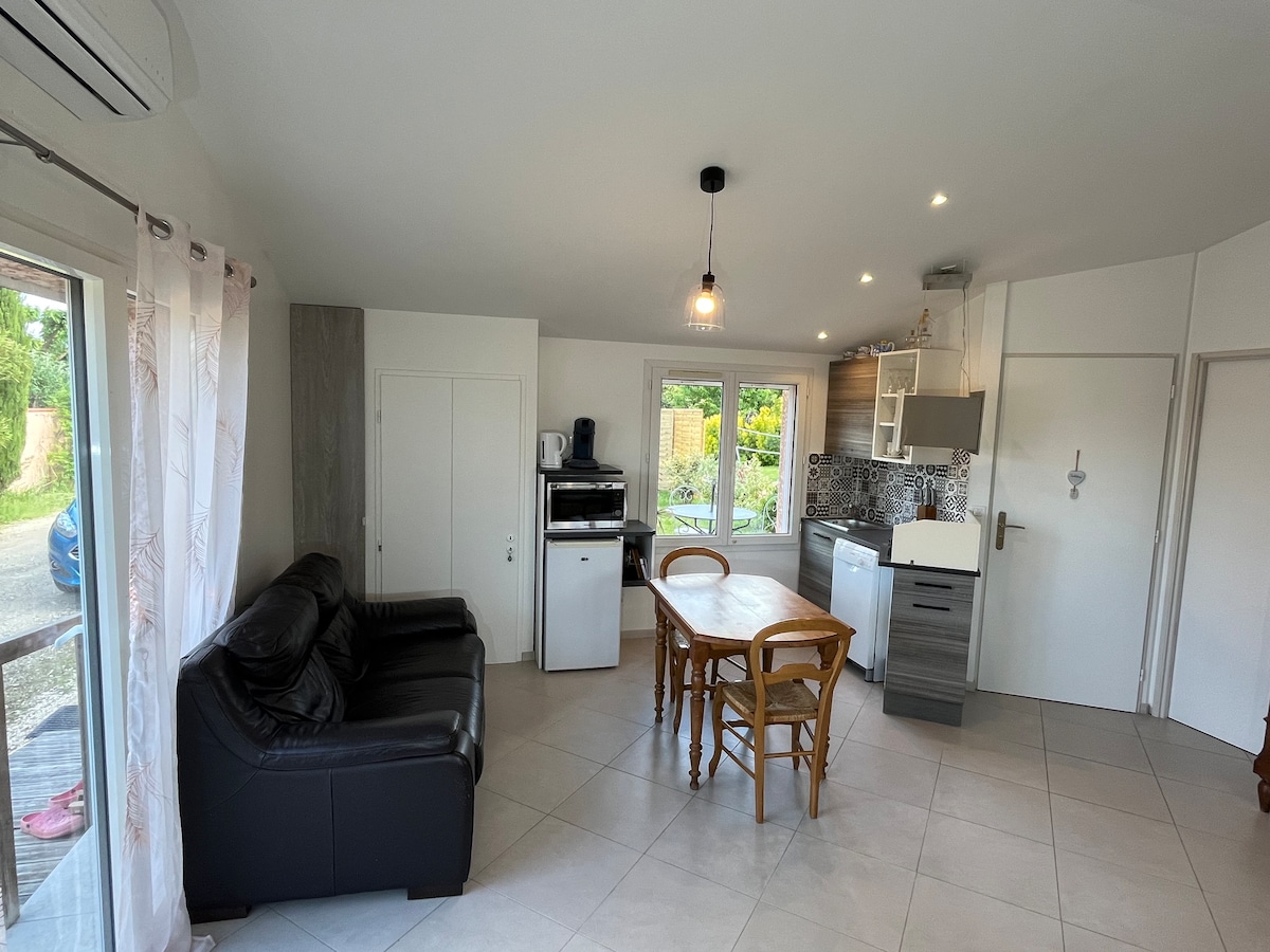 Ang tahimik na tuluyan ay ganap na na - renovate at ganap na independiyente sa loob ng aming tahanan ng pamilya, masisiyahan ka sa isang malaking kusina na may kagamitan, sala na may malaking sofa, Canal+. 2 silid - tulugan (May mga linen), kuna at banyo na may shower (May mga tuwalya). Sa labas, masisiyahan ka sa hardin kasama ang aming 3 manok at ang aming kaibig - ibig na aso na si Max, at ang mga bata sa trampoline! Malaking paradahan na magagamit mo. huwag mag - atubiling makipag - ugnayan sa amin para sa higit pang impormasyon!