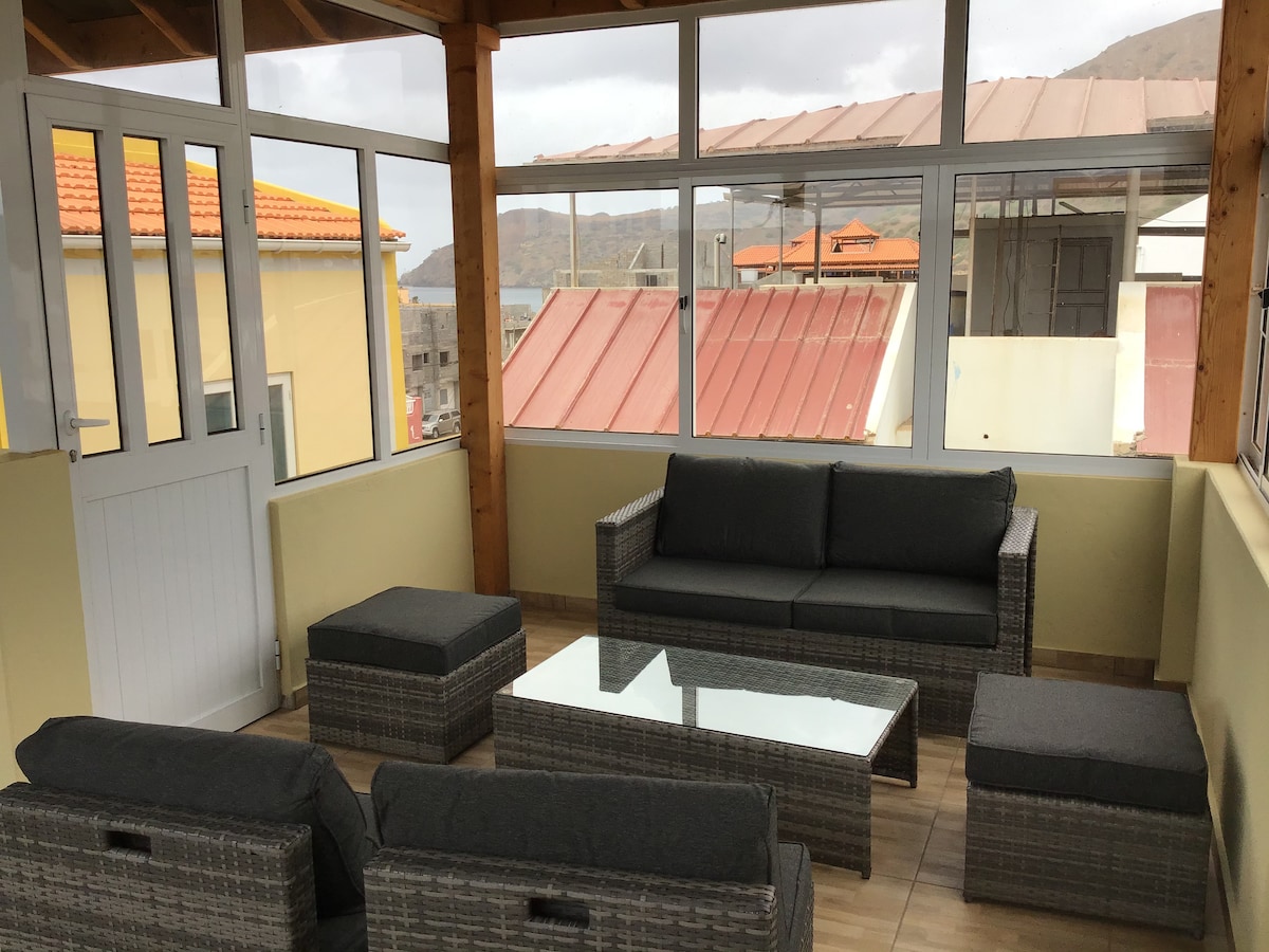 Ang Apartment na ito sa isang Duplex na bahay ay ang pinakamahusay na maaari mong makuha sa Tarrafal para sa presyo. Napapanatili nang maayos ang bahay at ang apartment kung kumpleto ang kagamitan para sa karamihan ng mga pangangailangan. Available ang mainit na tubig at air conditioning para sa iyong kaginhawaan sa buong pamamalagi mo. Maginhawang matatagpuan 3 minuto mula sa beach at Mini Markets. Tumatanggap ang pangalawang higaan sa sala ng hanggang 1 may sapat na gulang o 2 bata na wala pang 12 taong gulang. Available nang libre ang Washing Machine (minimum na 5+ araw na pamamalagi)