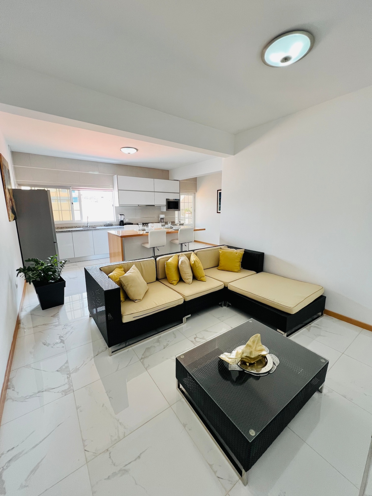 Ang kamakailang itinayong apartment ay 200 m lamang at humigit - kumulang 3 minutong lakad ang layo mula sa magandang buhangin at dalampasigang puno ng palmera ng Tarrafal. Ang sentro ng bayan na may magandang plaza ng nayon at maraming mga bar ay nasa agarang kapaligiran din.