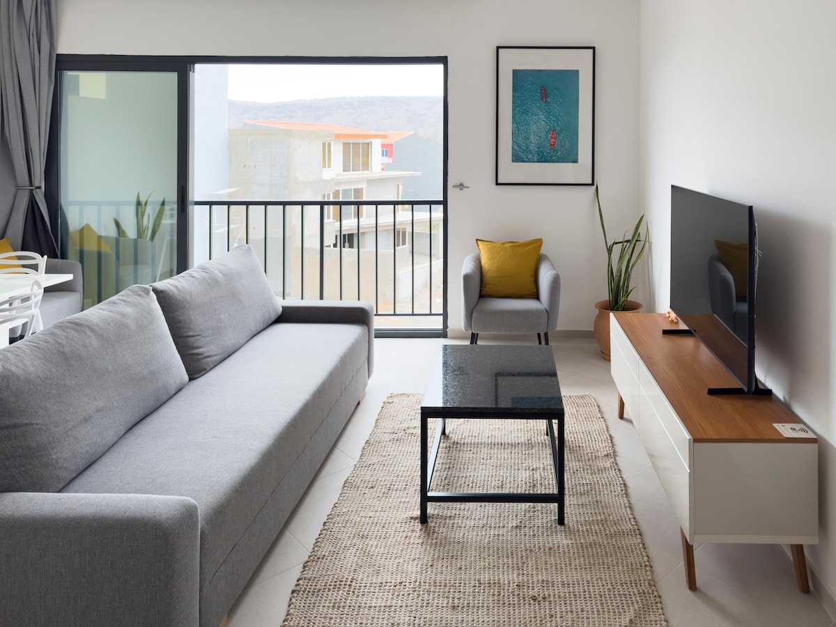 Maligayang pagdating sa aming listing! Huwag kang mag-atubiling makipag-ugnayan sa amin anumang oras—mabilis kaming sumasagot! Kaakit‑akit na apartment na may 1 kuwarto sa Ponta d'Atum, 2 minuto lang mula sa beach ng Tarrafal. Hanggang 4 ang tulugan na may komportableng sofa bed. Mag‑enjoy sa tanawin ng dagat at sa sign ng Tarrafal. Walang balkonahe pero parang nasa terrace ka dahil sa malaking pinto na bintana kung saan pumapasok ang simoy ng hangin at liwanag mula sa karagatan. 50 metro lang mula sa daanan sa tabing‑dagat—mainam para mag‑enjoy sa Tarrafal!