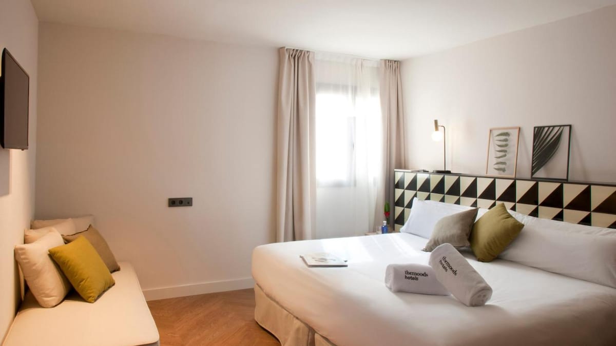 Masiyahan sa maliwanag na double room sa naka - istilong hotel na ito sa gitna ng Sitges. 30 metro lang ang layo mula sa promenade at sa beach. Smart TV, A/C, Pribadong Banyo, Indoor Patio. Magandang alok ng paglilibang, mga restawran, at pamimili sa malapit.