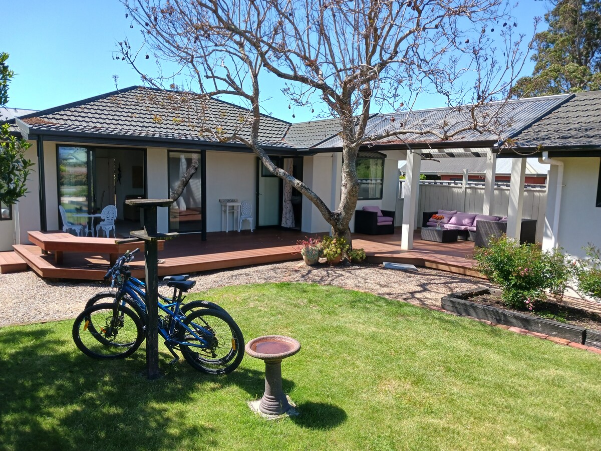 Matatagpuan ang naka - istilong at maayos na cottage na ito sa sarili nitong mature na bakuran at may magandang damuhan at deck para sa panlabas na pamumuhay. Matatagpuan malapit sa lahat ng inaalok ng Ruby Coast at sa loob ng paglalakad o pagbibisikleta papunta sa makulay na pantalan ng Mapua kasama ang boutique brewery, mga restawran, mga specailty shop at marami pang iba. Ang mahusay na cycleway ng panlasa ay nasa iyong pintuan at ang Able Tasman National park ay malapit tulad ng mga gawaan ng alak at artisano. Halika at tamasahin ang lahat ng inaalok ng magandang rehiyon