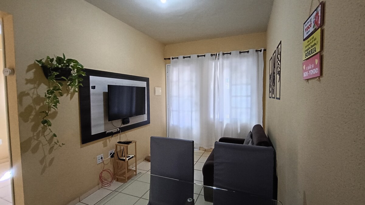 Yakapin ang pagiging simple sa tahimik at maayos na lugar na ito. Dentro de Condomínio, Todo Reformada. 3 minuto mula sa sentro na malapit sa supermarket, restawran,botika,ice cream, atbp. Charmosa Central Square, 8 km mula sa Betel do Brasil 5 km mula sa Water Park Sa tabi ng Rodovia Castelo Branco mga kaginhawaan: induction stove, microwave, electric oven, electric rice pan, vasilhame gallon ng tubig 20 litro, programmable fan, tv, electronic gate.