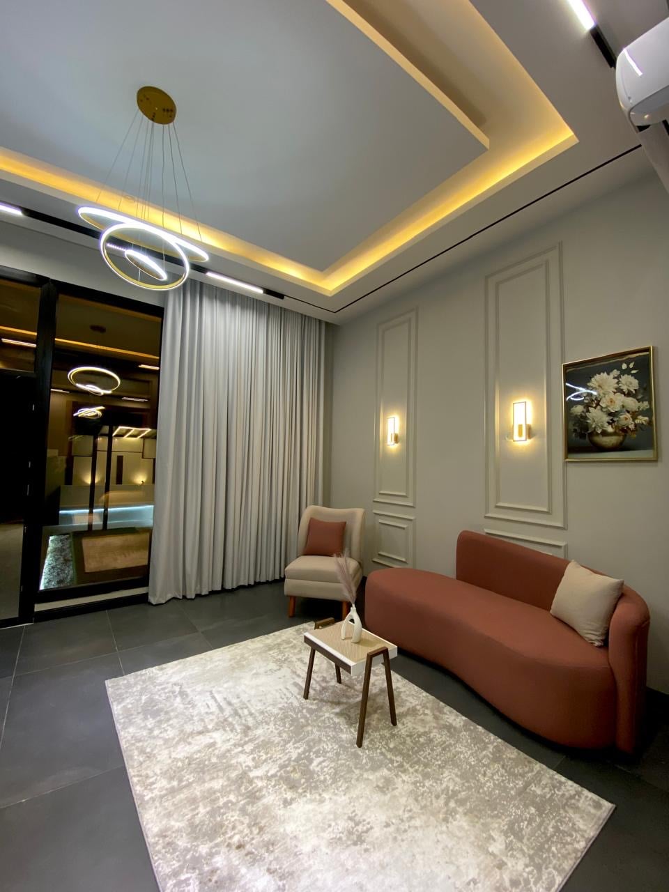 Isang hotel resort na nakatuon sa mga mag - asawa para mamuhay ng natatanging kapaligiran na idinisenyo sa isang natatangi at modernong estilo na angkop sa iyong pagrerelaks sa iba 't ibang kapaligiran Mayroon itong Pribadong Pool na may double - high na sala at tanawin ng master room sa swimming pool at sala May kontrol sa temperatura ang swimming pool Medyo Lugar at ligtas 40 Km mula sa Muscat Airport 35 minuto mula sa Paliparan