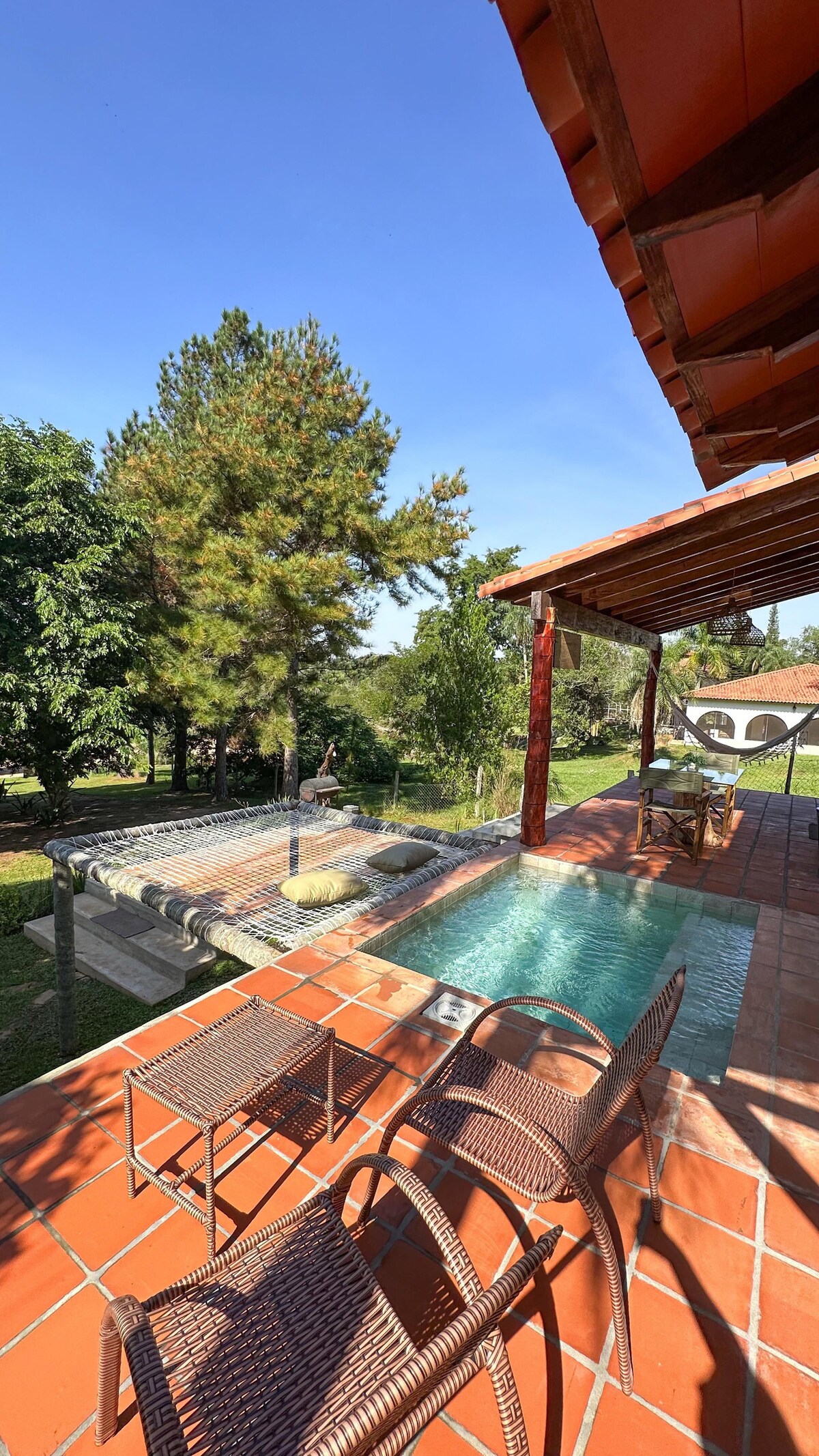 I - unplug mula sa iyong mga alalahanin sa maluwag at tahimik na lugar na ito at tamasahin ang kamangha - manghang pool sa isang rural - chic na setting, ilang hakbang ang layo mula sa downtown. Ang tanawin ng magandang Cerro Ybyturuzu at ang tahimik na kapaligiran kasama ang mabilis na access sa sentro ng lungsod ay gagawing isang napaka - kaaya - ayang karanasan ang iyong pamamalagi. Ang aming bahay ay may dalawang silid - tulugan na may pribadong banyo, isang kusinang may kagamitan, isang mahabang gallery na perpekto para sa pagrerelaks sa anumang panahon at isang malaking pool bilang isang postcard ng hardin.
