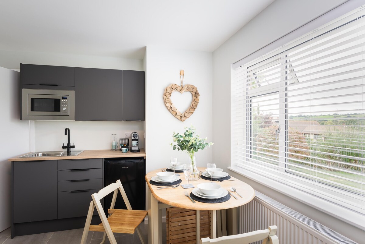 Isang magandang 2-bed apartment na 3 minuto lang mula sa Plymouth Hoe. May maliwanag na open‑plan na sala na may kumpletong kusina, kainan, pahingahan, Smart TV, Bluetooth speaker, at 400mb broadband. May double bed sa Blue Room, at may super‑king bed at pribadong balkonahe naman sa Sunshine Room. Mag‑enjoy sa modernong banyong may walk‑in shower, bath, at utility room. May kasamang malalambot na linen, tuwalya, at pambihirang pribadong paradahan sa lugar. Perpekto para sa kaginhawaan, kaginhawaan, at luho.
