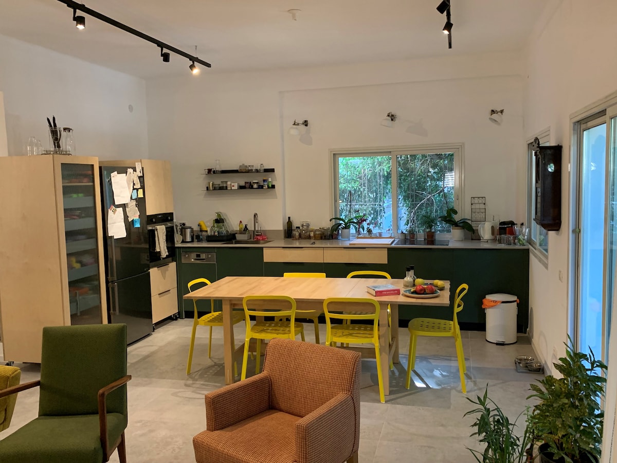 Kumusta at maligayang pagdating! Kung naghahanap ka upang manatili sa isang makulay at batang lugar pagkatapos ito ay ito. Ang loft ay nasa maigsing distansya mula sa Sarona market, Azrielly shopping mall at anumang bagay na kailangan ng isa habang naka - link din sa isang malaking halaga sa mga opsyon sa pampublikong transportasyon tulad ng mga bus, service taxi at ang pinakamalaking istasyon ng tren Ha - Shalom. Ang lugar ay homy at ang bawat detalye ay may pukyutan bagaman upang matiyak na ikaw ay pakiramdam sa bahay sa pinakamahusay na paraan na posible. Im looking forward to having you as my guest. :)