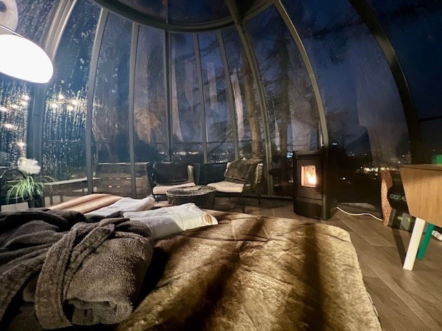 Roulotte Cocoon vue magique avec bain nordique
