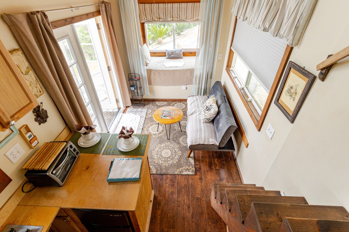 Sinimulan kong gawin ang munting bahay na ito noong 2017, na hinihimok ng hilig ko sa munting paggalaw ng bahay. Isa itong hiwalay na estruktura mula sa pangunahing bahay, na pinaghahalo ang mga bago, luma, na - reclaim, at modernong elemento. Nagtatampok ang munting bahay ng mga pinto sa France na humahantong sa pribadong deck, na perpekto para sa pag - enjoy sa labas. Kumpleto ang kusina sa lahat ng kailangan mo, kabilang ang: - Full - size na refrigerator - Microwave - Toaster oven - Hot plate - Electric wok - Coffee maker (na may mga K - cup) - Mga kaldero, kawali, at kagamitan
