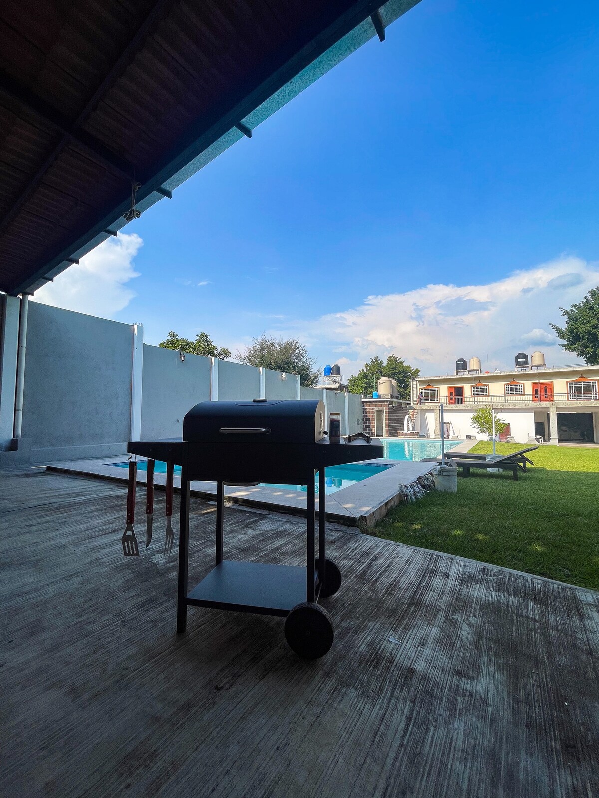 Beautiful country house surrounded by nature, the best place to rest and disconnect from the city with your family. The house has a beautiful terrace with a pool, 3 bedrooms each with a full bathroom, a garden with a fire pit. The house includes high-speed internet (200 mbps) perfect for home office or streaming, and is also a gated community with excellent security. The neighborhood has home delivery services such as Walmart, Chedraui, and didi food.