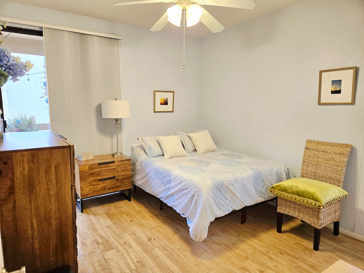 Magandang lokasyon sa Central Tempe malapit sa ASU. Magandang balkonahe sa ikalawang palapag, natural na liwanag, kumpletong kusina, banyo, washer/dryer, at komportableng queen‑sized na higaan. Walang kapintasan, napakatahimik at ligtas. Madaling makakapunta sa Downtown Tempe, Mesa, Scottsdale, Phoenix, at Chandler. Napakalapit sa mga supermarket, mall, restawran, bar, hintuan ng bus, ospital, gym, at pangunahing freeway. Free - shuttle stop sa mga pangunahing site sa Tempe (5 minutong lakad). Bike friendly na lugar. 15 -30 minuto sa hiking bundok.