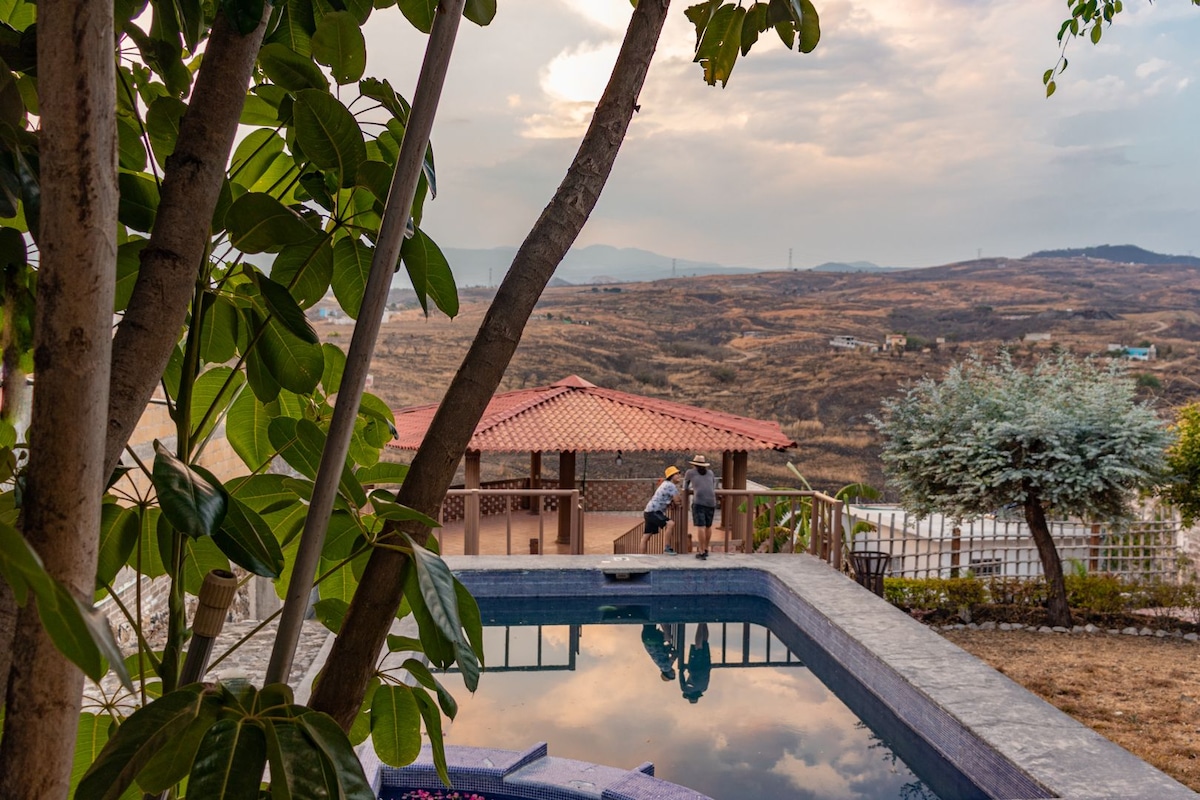 Magandang tanawin mula sa pribadong pool papunta sa Tepozteco Mountain range. Ang Tlayacapan ay isang " pueblo magico" na nakakarelaks na kapaligiran, mga aktibidad sa sports sa mga bukas na espasyo na magagamit bilang mountain climbing, trail promenades at mountain bikes. Malapit sa "Lomas de Cocoyoc" country club na may 18 butas golf course at tennis. Ang water park na "Six Flags Hurracaine Harbor" ay 15 minuto ang layo sa pamamagitan ng kotse. Gayundin ang Tepoztlan at Yecapiztla ang bayan ng karne ng cecina. Home office friendly na may hi - speed internet. Tamang - tama para sa mga pamilya.