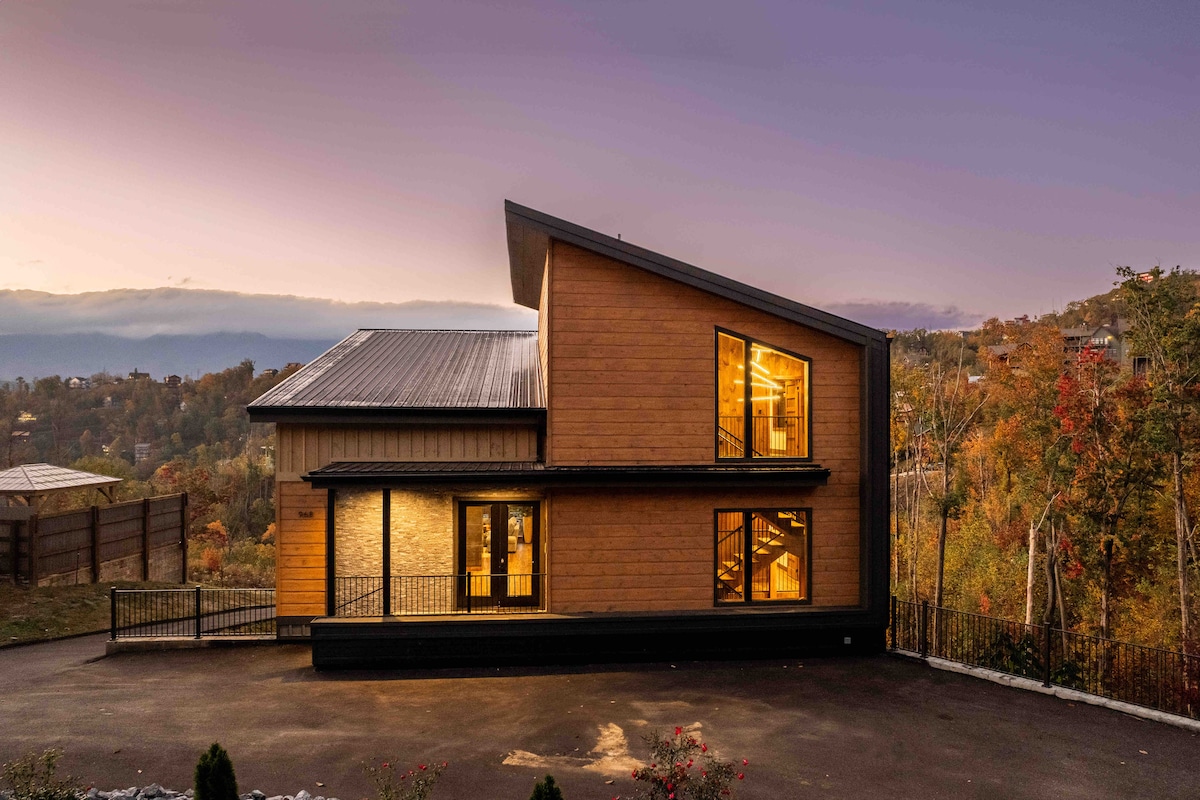 Bagong gawang cabin sa Great Smoky Mountains. May mga akomodasyon para sa hanggang 12 bisita, nag - aalok ang natatanging bakasyunan sa bundok na ito ng 4 na suite, loft na tulugan, 4 na kumpletong banyo, at 3 kalahating banyo. Nilagyan ang 4,000 sqft cabin na ito ng maluwag na living at dining area, fireplace, kusinang kumpleto sa kagamitan, game room, patios, balkonahe, at deck, kung saan maaari kang magtipon sa paligid ng fire pit, grill, TV, o heated swim spa. May access sa Chalet Village Resort: mga pool, tennis court, at clubhouse.