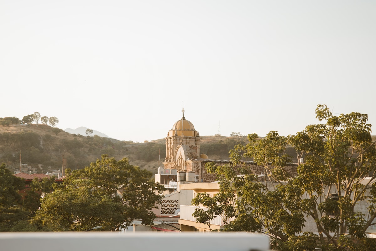 Tuklasin ang kagandahan ng kaakit - akit na apartment na ito na matatagpuan sa makulay na sentro ng Tequila, ilang hakbang mula sa pangunahing parisukat, perpekto ang lugar na ito para tamasahin ang kakanyahan ng iconic na kaakit - akit na nayon na ito. Napakalapit na makakahanap ka ng mga tindahan, restawran, at aktibidad na mabu - book. Nasa unang palapag ng gusali ang apartment na umaakyat sa hagdan sa kaliwa. Para sa iyong kaginhawaan, mayroon kaming libreng saklaw na paradahan para sa bisita na 50 metro ang layo.(Mga oras mula 8:30 am hanggang 9 pm)