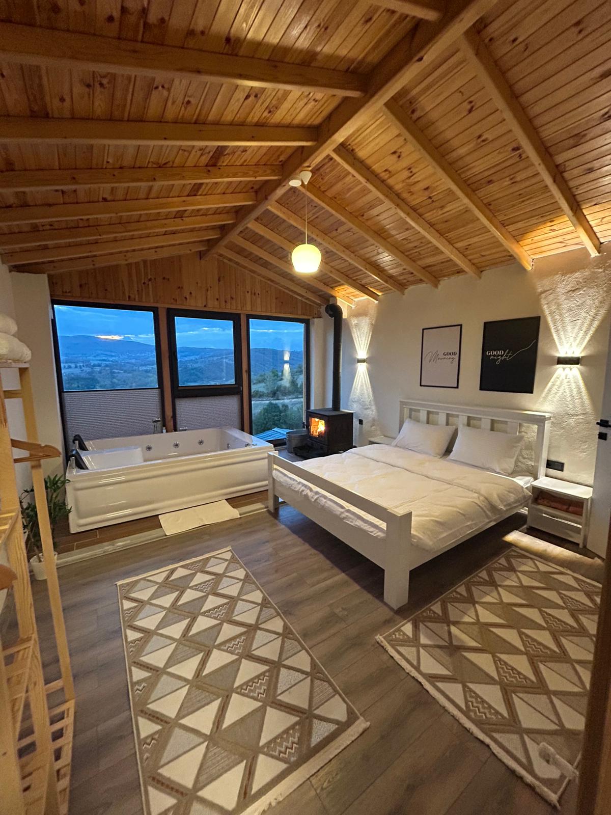 Isang villa na may konsepto ng bato na gawa sa mga likas na bato sa Çakallı, Çakallı, ang lupain ng Çakallı Menemeni, na may pambihirang tanawin ng kagubatan at kalikasan. 25 km papunta sa sentro ng Samsun, humigit - kumulang 20 minuto. Nasa tabi mismo ng kagubatan ang aming villa. Ang aming villa, na binubuo ng 2 palapag, ay may 1 suite room na may jacuzzi sa itaas na palapag at 2 silid - tulugan at maluwang na sala+kusina sa ibabang palapag. May hiwalay na banyo sa 2nd floor. Mayroon itong malaking hardin na 250 m2 sa lugar sa labas at kumpletong patyo na gawa sa kahoy.