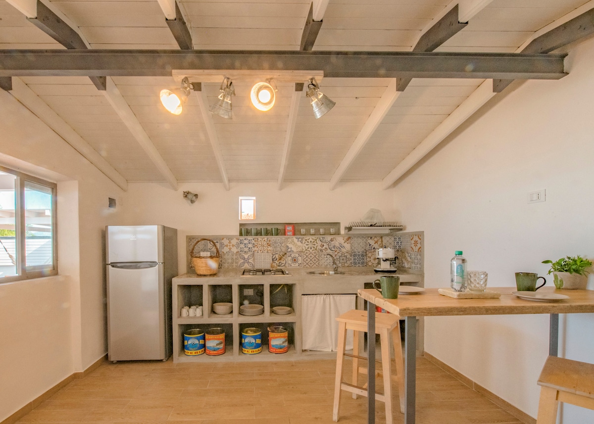 Ang Alicudi & Filicudi Studios ay maliliit na apartment na may salamin na nilikha ng isang proyekto ng pagbawi at muling pagbangon ng teritoryo. Angkop para sa bawat uri ng pangangailangan, bakasyon o trabaho. Malayang pasukan sa kalsada at nakaharap sa dagat. Sa tag - init (Mayo hanggang Setyembre) sa beach ay may Eco Beach Restaurant, isang kahoy at kawayan na istraktura kung saan bahagi ng mga beach lounger ay para sa paggamit ng bisita. Isang lugar na may kahanga - hangang kapaligiran kung saan puwede kang mag - almusal, uminom, o kumain ng isda