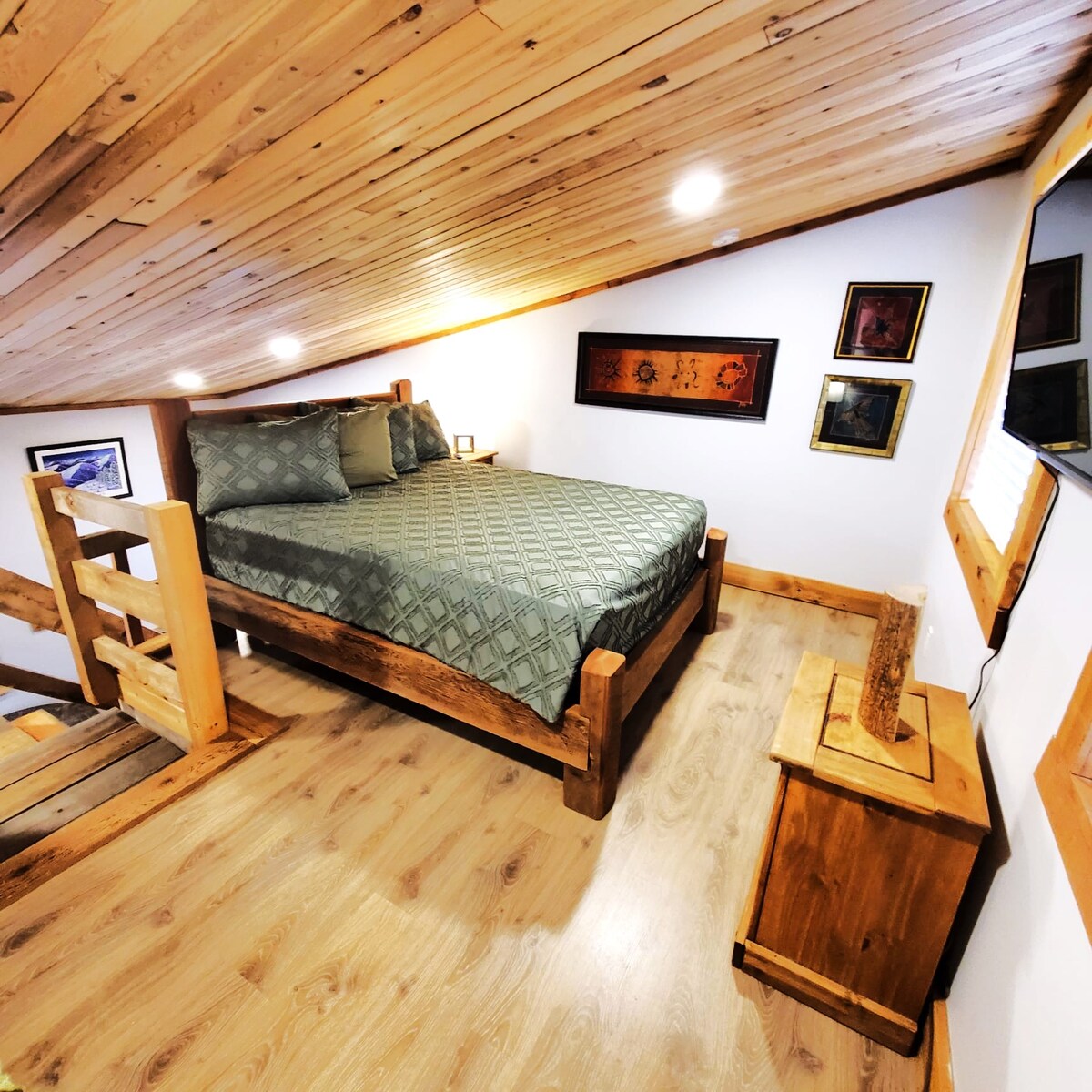 Newly built spacious Cabin - 10 min From Terrace Designed for couples, solo adventurers and business travellers Loft bedroom with Comfy bed Large Fully equipped Kitchen Covered patio Short walk to The Kitsumkalum River Hiking trails on the property Many beautiful adventure areas minutes away Close proximity to Shames Mountain Ski Resort Warm & cozy in the winter... Breath-taking in the summer! You will love this cozy adventure pad