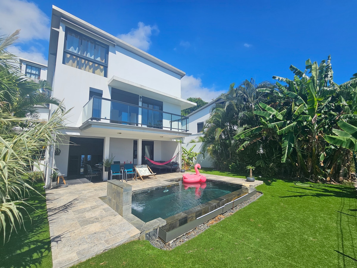 Mapayapang villa na nag - aalok ng nakakarelaks na pamamalagi para sa buong pamilya/mag - asawa. Mayroon itong isang silid - tulugan na may double bed (140x190) at sa sala ng sofa bed para sa 2 tao (140x190) . Kumpletong kusina, banyo, maliit na pribadong pool, pribado at bakod na paradahan. 10 minutong lakad ang layo ng lugar na ito mula sa Manapany Basin at Ti Sand. Malapit din ito sa beach ng Grand Anse, Langevin, at malaking shopping mall.