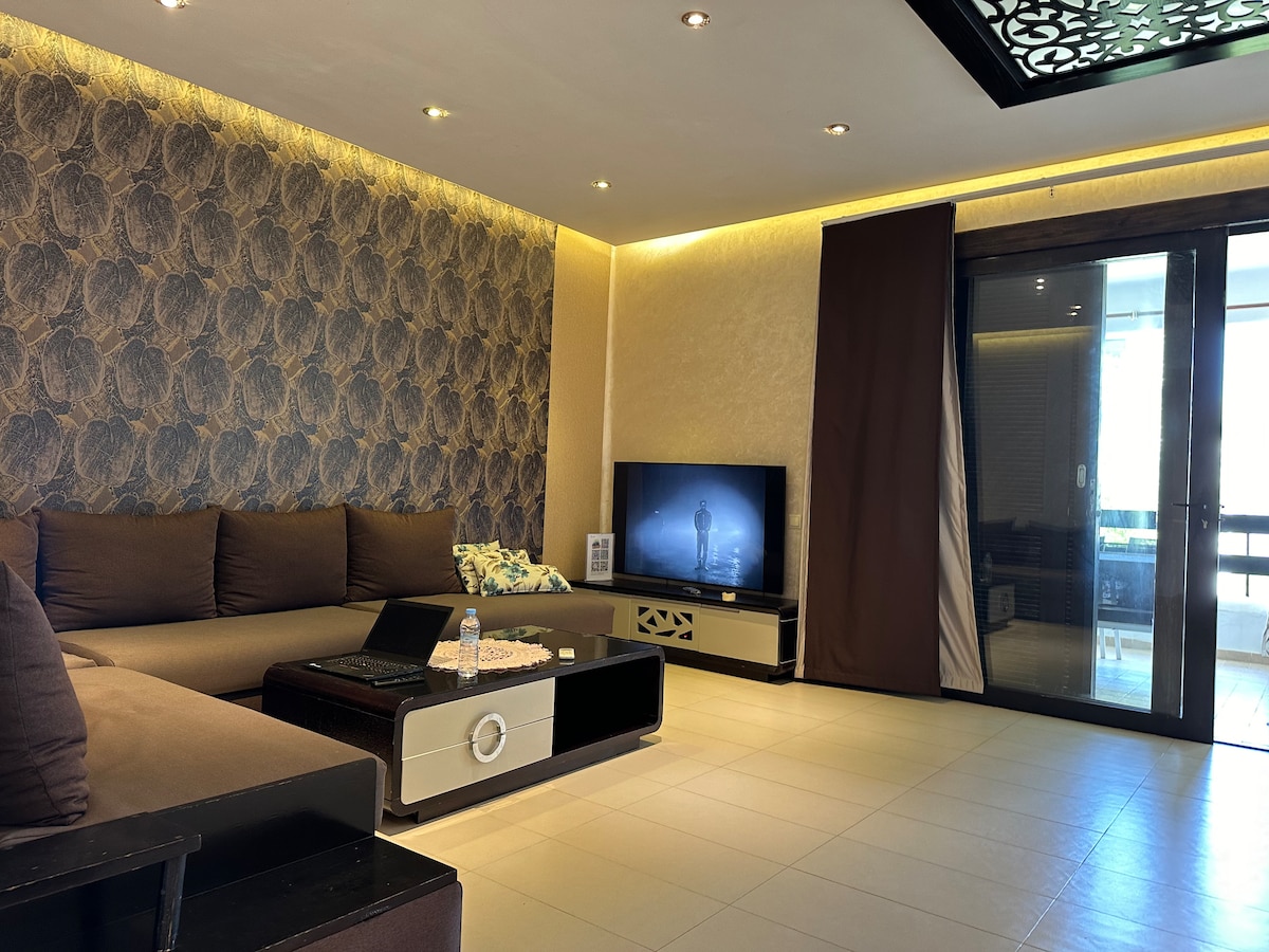 ✨Ang Panoramic apartment sa Les Jardins Bleus ay may modernong disenyo at elegante. Pinag-isipang mabuti ang bawat bahagi para magkaroon ka ng pambihirang karanasan Gitnang ✨lokasyon ✅ Apartment na may malawak na tanawin ng dagat at malapit sa: ✅ 1 min mula sa Martil Beach 🏖 at sa sikat nitong Corniche ✅ 5 min sa Cabo Negro Beach 🏝 ✅ 4 na minuto mula sa Ikea at KFC 🍗 ✅ 6 min mula sa Marjane at McDonald's 🍟 ✅ 1 min sa mga restawran, cafe, tindahan