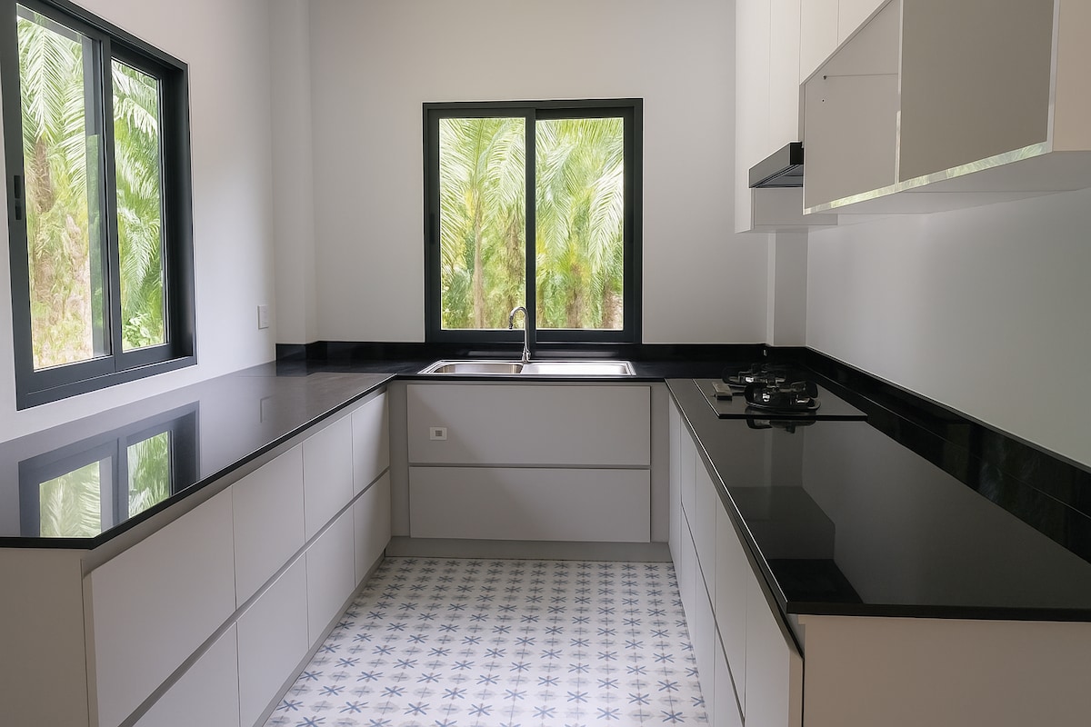 Magrelaks sa tahimik na tuluyan sa gilid ng burol na napapaligiran ng mga halaman at tanawin ng kabundukan. Perpekto para sa pagtatrabaho nang malayo o mga bakasyunang nagpapahinga, nag-aalok ang maliwanag at modernong taguang ito ng mga tanawin ng hardin, sariwang hangin, at mga nakakapagpahingang tunog ng kalikasan. Mainam para sa mga magkasintahan o biyaherong naghahanap ng katahimikan at inspirasyon. Matatagpuan sa magandang lokasyon na 1 oras ang layo mula sa Phuket International Airport, 1 oras at 30 minuto ang layo mula sa Krabi International Airport, at 1 oras ang layo mula sa Khao Lak, nag-aalok ang bahay ng mapayapang tahimik na lugar nang hindi nakakaramdam ng pagkakahiwalay.