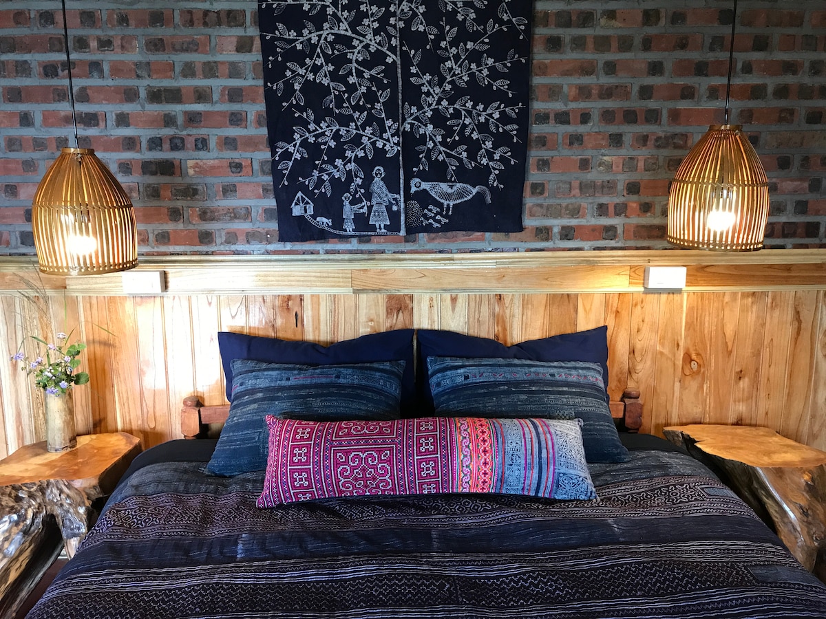 We designed our happy bungalow inspired by a traditional Red Dao (our tribe) house, featuring a sturdy wooden frame, red bricks and precious woods. Glass openings beneath the roof enhance the natural light. There's a lovely mezzanine for extra mattresses, perfect for accommodating happy kids or friends. All the furniture and decorations are handcrafted, while fairy lights create a cozy and enchanting atmosphere. Enjoy your own private bathroom right on the side too! #EnjoyHappiness 😁😁😁