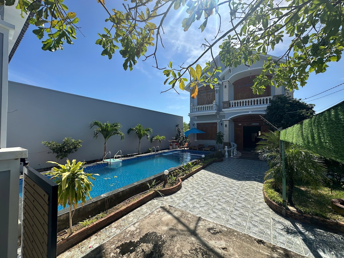 Nagtatampok ang Lee Villa ng eleganteng European - style na arkitektura na may bukas na layout, na napapalibutan ng mayabong na halaman at mga makukulay na bulaklak. Kasama sa harap ang swimming pool na ginagamot ng asin at pribadong garahe para sa madaling pag - access ng kotse. Sa loob, makakahanap ka ng naka - istilong sala, kumpletong kusina at bar, at maliwanag na sentral na lugar na naiilawan ng skylight. Nag - aalok ang villa ng 2 double bedroom at 1 twin room. perpekto ito para sa mga pamilya, kaibigan, o propesyonal na naghahanap ng tahimik at nakakapreskong bakasyunan.
