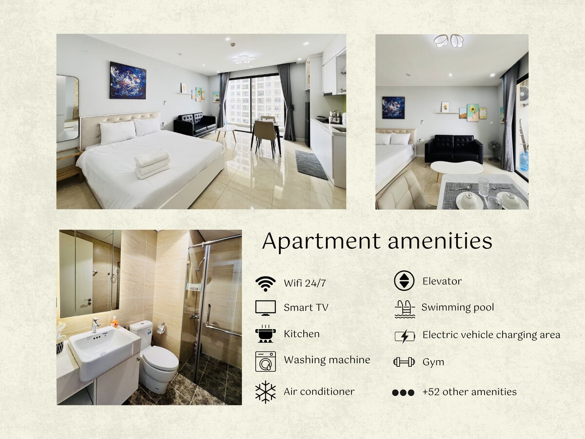 SERBISYO NG APARTMENT NA MATUTULUYAN – VINHOMES ♪ Maligayang pagdating sa komportable, komportable at pribadong tuluyan tulad ng sarili mong tuluyan. Ang apartment ay mahusay na inasikaso, kumpleto sa kagamitan at pinaglilingkuran tulad ng isang 5 - star hotel – perpekto para sa isang maikling bakasyon o isang mahabang business trip. BAKIT hindi isang HOTEL? ♪ Dito, pareho kayong may pakiramdam ng pagiging tanggap, at madaling mapupuntahan ang mga utility tulad ng: swimming pool, gym, sinehan, restawran,... Ilang hakbang lang para magkaroon ng lahat ng ito – magaan, komportable at gaya ng gusto mo.