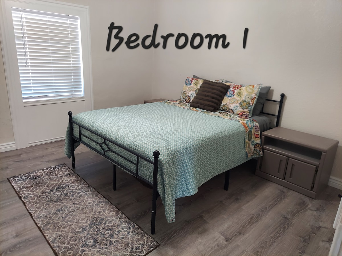 Hayaang ito ang iyong tahanan na malayo sa iyong tahanan. Masiyahan sa malinis na komportableng pamamalagi sa pampamilyang tuluyan na ito. Malaki at maluwang ang tuluyang ito. Kasama ang malaking bakuran para sa dagdag na paradahan. Sa loob ay makikita mo ang 2 silid - tulugan na may maraming komportableng higaan, isang banyo, isang malaking kusina at silid - kainan, kasama ang isang maluwang na sala na nag - aalok ng pull out couch para sa mga dagdag na natutulog. May sariling AC unit ang bawat kuwarto. Matatagpuan sa isang mapayapang kapitbahayan, na ginagawang maganda at maginhawa ang iyong pamamalagi.