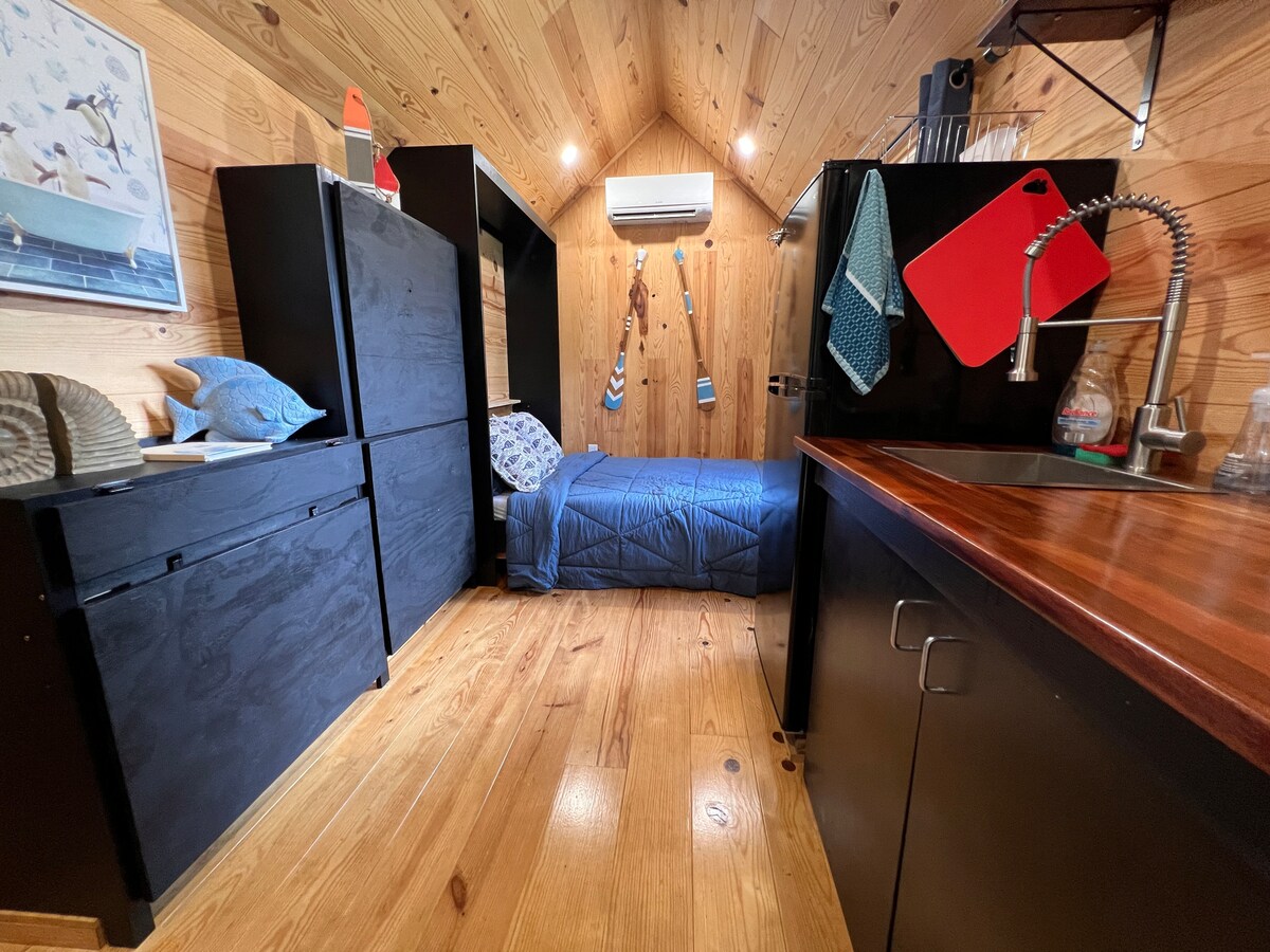 The Nauti House - Isang Cozy, Nautical, Tropical Tiny House Retreat Maligayang pagdating sa aming kaakit - akit, tropikal, at nautical na munting bahay, isang perpektong bakasyunan na matatagpuan sa gitna ng Acreage, isang komunidad ng mga kabayo sa West Palm Beach, Florida. Mainam para sa mga mag - asawa, solo adventurer, o business traveler, nag - aalok ang aming munting bahay ng natatanging kombinasyon ng kaginhawaan at estilo. Ang aming munting bahay ay maingat na idinisenyo upang i - maximize ang espasyo at kaginhawaan na may 256 square footage ng komportableng panloob/panlabas na espasyo.