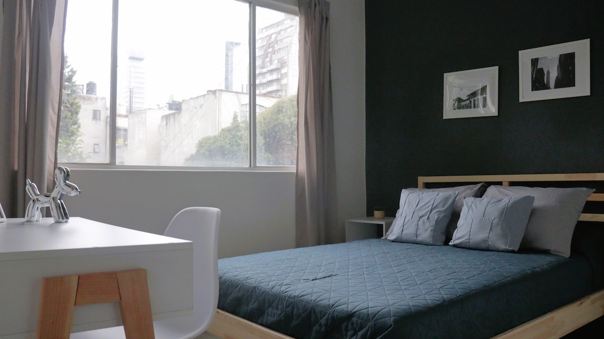 Pinagsasama ng naka - istilong apartment na ito ang kagandahan ng Brooklyn sa kagandahan ng CDMX, pulang brick, itim na bakal, at komportableng disenyo. Masiyahan sa komportableng King bed, kumpletong banyo, kumpletong kusina, at Smart TV. Ilang hakbang lang mula sa Álvaro Obregón Avenue, malapit ka sa mga cafe, tindahan ng libro, gallery, at masiglang nightlife. Sa gitna ng Roma Norte, na may madaling access sa Condesa at Reforma.