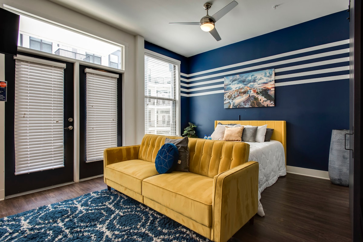 Maligayang pagdating sa Bluebird & Barrels, isang sexy hideaway na idinisenyo ng sariling Megan Soto ng Nashville! Nilagyan ang condo sa downtown na ito ng swimming pool, fitness room, at gated parking garage (na may nakatalagang lugar!). Maglibot sa mga patok na restawran, hot spot, coffee shop, at bar na madaling puntahan. Pagkatapos, bumalik sa modernong paraiso kung saan patuloy ang kasiyahan! Uminom sa balkonahe o maghapunan nang may magandang tanawin. Ang perpektong 1 Bedroom condo + bunk room na ito ay kayang tulugan ng 6.