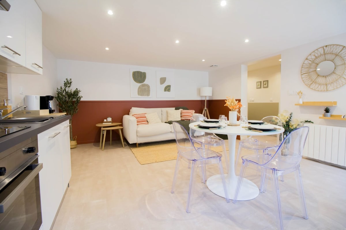 Ikinagagalak naming ipakilala ka sa aming 2 kuwarto na tuluyan na matatagpuan sa mapayapang suburban district ng Old Orly, na tumatanggap ng 5 bisita (posibleng dagdag na higaan sa ika -6 na higaan, nang may dagdag na bayarin). Malapit sa paliparan (10min) , transportasyon (RER C 10min walk), mga tindahan at parke, nag - aalok ang 45m² na akomodasyon na ito ng komportableng setting para sa iyong pamamalagi. Ang eleganteng annex na ito na ginawa sa basement ng aming kaakit - akit na pavilion, ay may pribadong access para sa iyong kaligtasan. Hanggang sa muli!