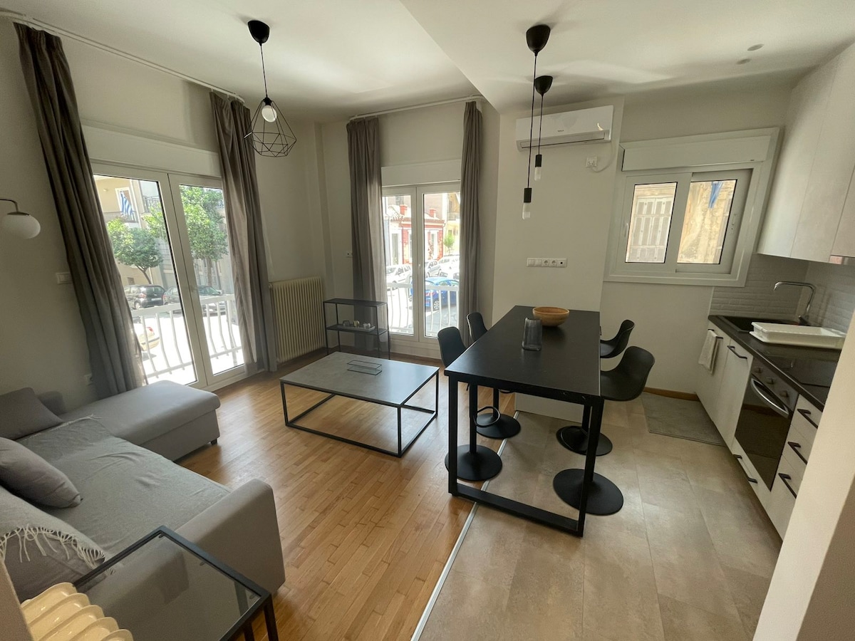Isang maganda, maluwang, maaraw, kahanga - hangang apartment sa Irakleidon pedestrian, sa Thisseio, isang tahimik at madaling mabuhay na kapitbahayan, na may isang silid - tulugan, isang malaking sala na may double sofa bed, isang kusinang kumpleto sa kagamitan at mesa para sa 4, at isang opisina na may PC, dalawang cute na balkonahe para sa pagtangkilik sa araw o ilang oras ng kalidad, madaling pag - access sa mga hintuan ng bus, dalawang istasyon ng metro, at lahat ng mga sentral na atraksyon at mga bagay na dapat gawin at makita sa gitna ng Athens. Kahanga - hangang pagpipilian para sa mga mag - asawa, pamilya, grupo, propesyonal