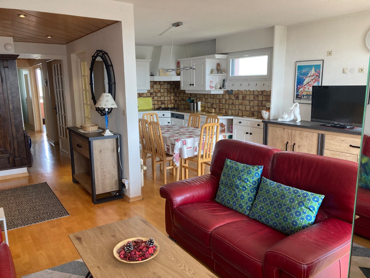 Sa tirahan " Des Soldanelles" isang apartment na tumatawid sa F4 lahat ng kaginhawaan, sa Thonon - Les - Bains, Haute - Savoie Mont Blanc, 5 minuto mula sa sentro, napakalapit sa mga bundok, sa gilid ng Lake Geneva at Switzerland! Sa ika -4 at huling palapag na may elevator, (2 apartment bawat landing), digicode at intercom, wifi. Maaraw at maliwanag sa tabi ng mga bay window, 2 balkonahe, 1 terrace. Para sa 6 na tao kasama ang mga bata Maraming aktibidad sa tag - init (beach, paglalakad, pagbisita) at mga aktibidad sa taglamig (skiing, hiking)