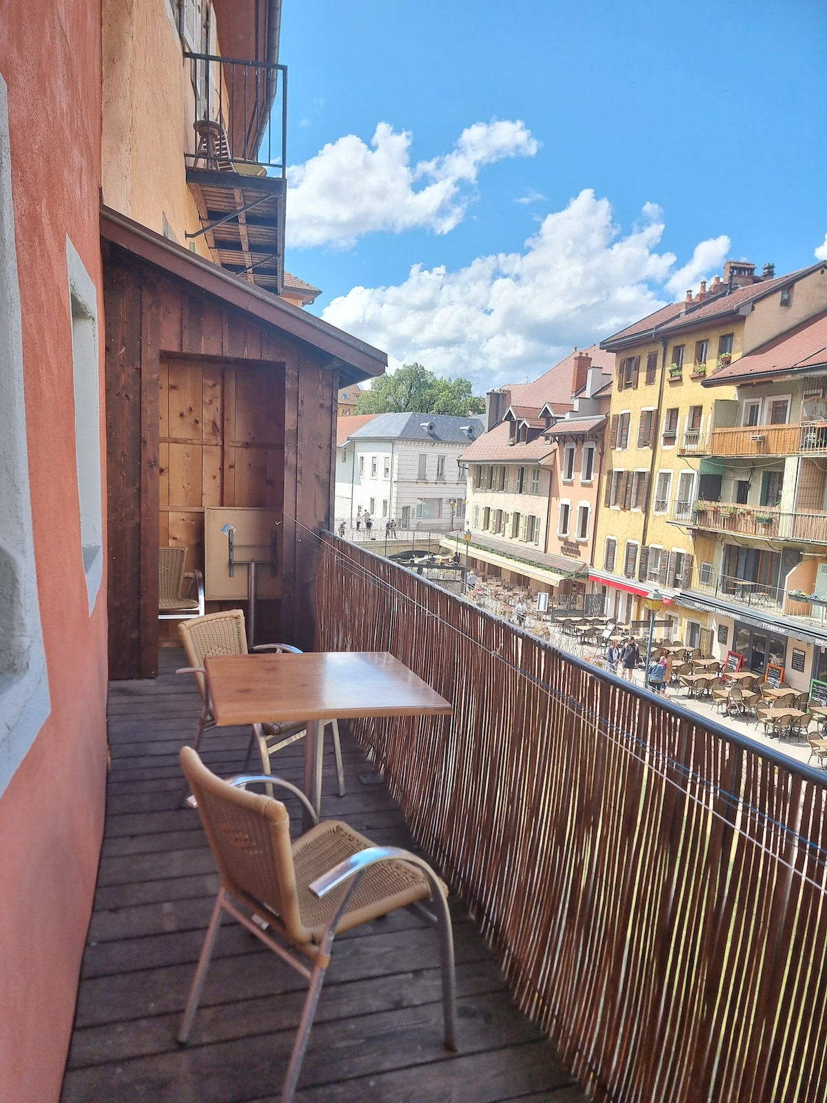 33m2 studio na may malaking balkonahe sa Thiou Canal, perpekto para sa almusal o aperitif sa pagtatapos ng araw. Tahimik, maingat, at malapit sa maraming aktibidad ang tuluyan (5 minutong lakad papunta sa lawa, kastilyo,...). Sa gitna ng lumang bayan ng Annecy, puwede kang kumain sa isa sa maraming magagandang restawran o mag - enjoy ng ice cream sa glacier( ang pinakamagandang glacier ng alpine). Para sa accessibility, 8 minutong lakad ang layo ng apartment mula sa istasyon ng tren.