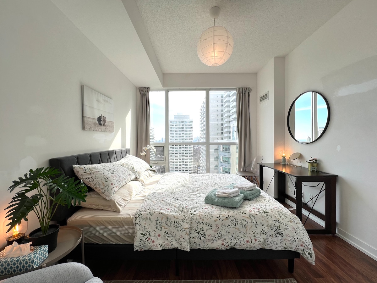 Your own studio/bachelor apartment with a view of a lake + everything you need to feel like you never left home. Work with a breathtaking view, fast and stable gigabit wifi,indoor parking,Air Conditioned and Heated suite. Wake up to an unobstructed view of Lake Ontario from close to the 30th floor. Be connected to the downtown core while close to Lake Ontario and Coronation Park. Steps from Exhibition, Budweiser stage, Porter Airport, CN tower, Rogers Centre, King St W and Liberty Village.