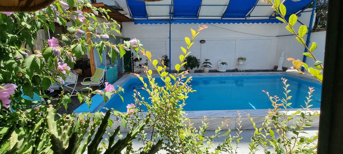 Magrelaks sa natatangi at tahimik na bakasyunang ito. Ang kusina ay ibinabahagi sa mga common area sa isang lugar na malapit sa bahay, kabilang ang labahan. Ang pool ay napaka - simple, ito ay hindi marangya, ngunit ito ay may magandang kalikasan sa paligid. Ang lugar na ito ay pinapatakbo ng pamilya, at ito ay tunay.