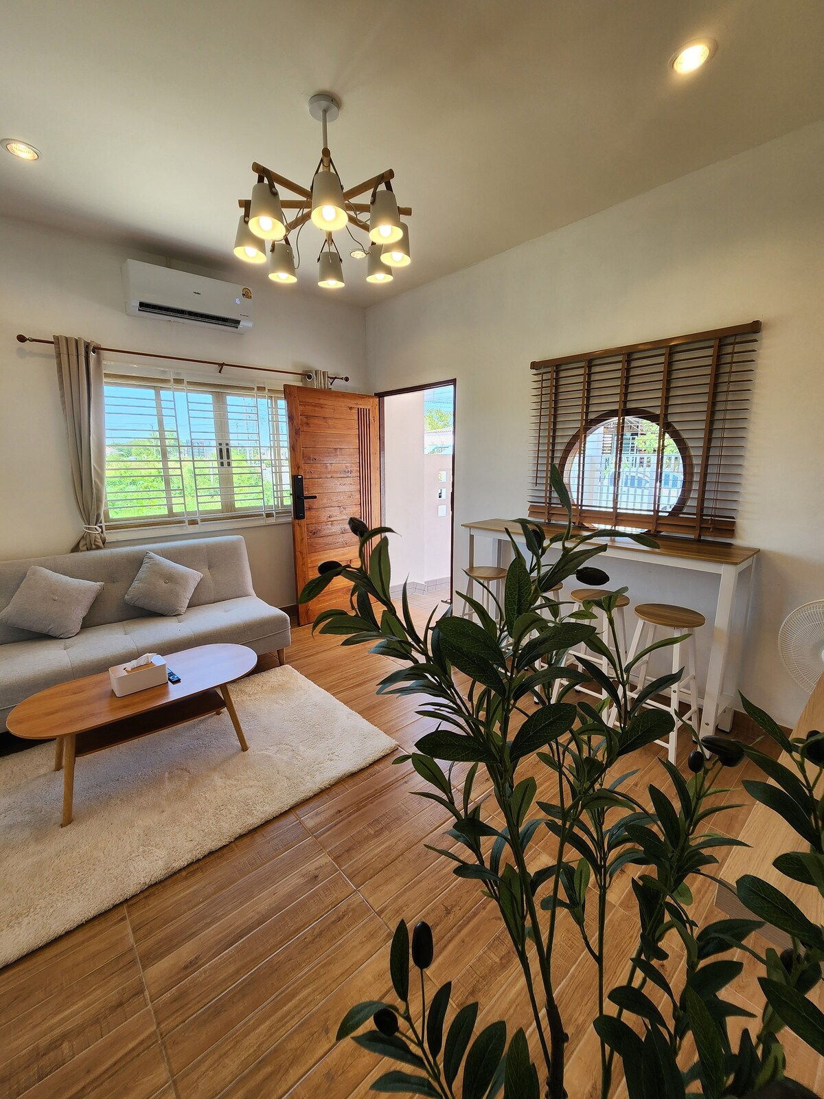 Relax in an elegant private suite at the heart of Hat Yai. This 1-bedroom, 1-bathroom unit features a separate living room, cozy bedroom with air conditioning, and a bathroom with bathtub. Enjoy the balcony view, fully equipped kitchen, and in-room washing machine for added convenience. Perfect for couples, solo travelers, or business stays, the suite offers both comfort and practicality — a stylish base for your Hat Yai journey.