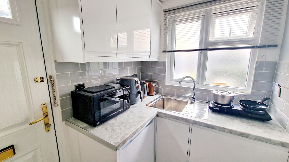 ●●●Mayroon kaming 2 libreng parking space●●● Maligayang pagdating sa aming maluwang na tuluyan na may 3 kuwarto na matatagpuan sa Dartford, malapit sa London. Ang magandang tuluyan na ito ay perpekto para sa malayuang pagtatrabaho at ang mga kontratista ay maginhawang tumatanggap ng hanggang anim na tao. Malapit ang Bluewater shopping mall, shopping mall sa tabing - lawa at Dartford train Station/town center. Ang master suite ay may en - suite na banyo na nagbibigay ng privacy. Tinitiyak naming hindi malilimutan ang iyong pamamalagi.